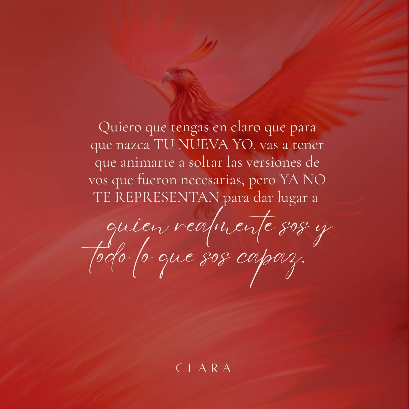 "Cuando comencé el programa me sentía perdida, con falta de claridad y confianza. Clari, a lo largo de las semanas nos fue llevando por una serie de ejercicios, meditaciones, visualizaciones muy profundos que nos hicieron indagar y cuestionar nuestras creencias y limitaciones e ir saliendo de esos pensamientos recurrentes que creemos que nosotras solas tenemos. Luego una vez más livianas de esas cargas, ir reconociendo nuestro verdadero valor, deseos y talentos para finalmente resurgir con más fuerza, envalentonadas, motivadas y con nuestro propósito clarificado."